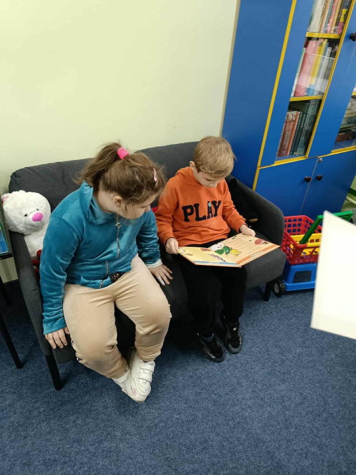 Dzieci miały okazję poznać zasady korzystania z biblioteki, obejrzeć najciekawsze książki dla młodych czytelników oraz wziąć udział w zajęciach czytelniczych prowadzonych przez panią bibliotekarkę.